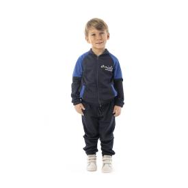 TUTA REALIZZATA IN TESSUTO 100% POLIESTERE PIQUET DI COLORE BLU CON CONTRASTI DI COLORE ROYAL. .PANTALONE CON TASCA ALLA FRANCESE EN ELASTICO ALLE CAVIGLIE E PROFILO ROYAL.